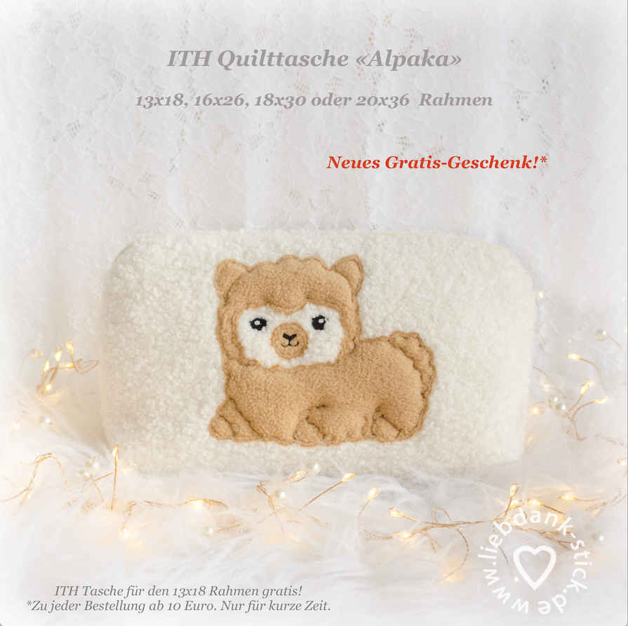 ❤️ Die neue ITH Quilttasche „Alpaka“ für den 13x18 Rahmen könnt Ihr sogar GRATIS bekommen!