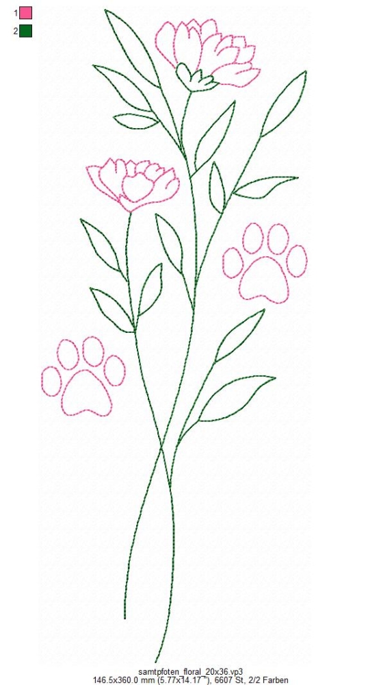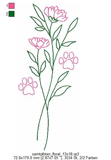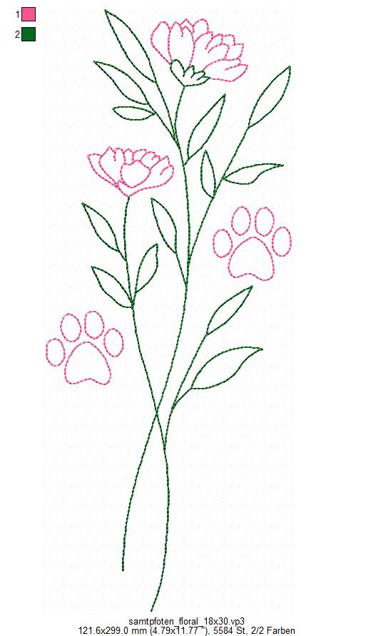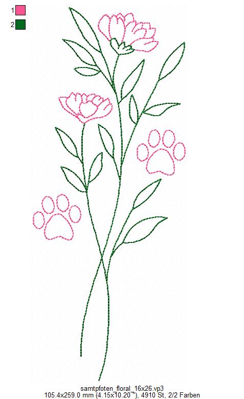 Pfötchenblumen, Stickmuster-Set (30 Stickdateien)